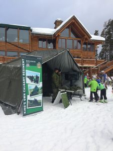 On March 25th 2017 B Squadron of the Kings Own Calgary Regiment had the pleasure of holding a recruiting event at the Whisky Jack Lodge in the Lake Louise Ski Resort. Ski conditions were excellent and hundreds of skiers were on the slopes enjoying the last few weeks of spring skiing. The recruiting team, consisting of a section of troops from A Sqn and B Sqn under the direction of 2nd Lieutenant Adam Stauble spent the day interacting with members of the public explaining the exciting opportunities working with the Kings Own can provide. Potential recruits were given the opportunity to try on military equipment, watch interactive videos about the unit's recent activities and deployments and ask questions to members of the Regiment about what to expect as a member of a reserve armored reconnaissance regiment. The Kings Own would like to say a special thanks to the crew at the Lake Louise Ski Resort for making this event such a great success.