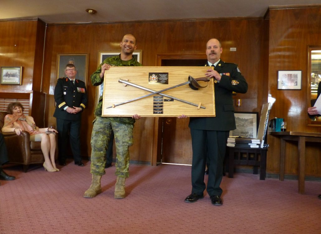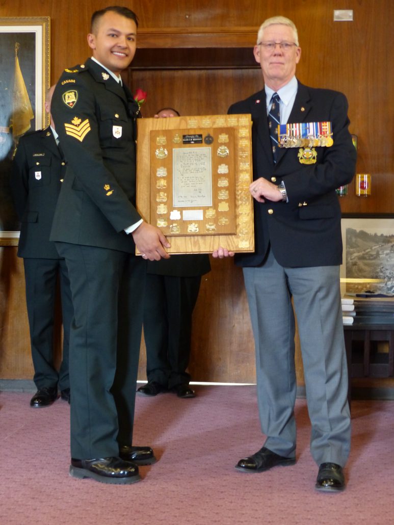 The Lovo Trophy: Warrant Officer Mark Denson. Awarded annually to the top Senior NCO or Warrant Officer in the Kings’ Own Calgary Regiment. This trophy was introduced by RSM (WO1) Robert S. (Bob) Lovo CD. WO1 Lovo joined the King’s Own after service in WWII and was RSM from 1962-1970.